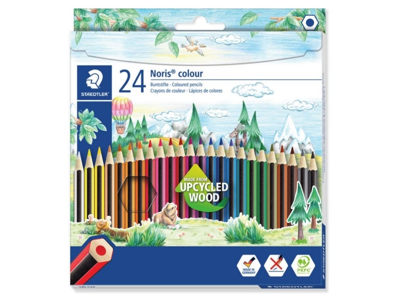 Primer lápiz de color fabricado con el innovador material WOPEX. Presentados en caja de cartón, sus 36 lápices de colores surtidos tienen forma hexagonal, fabricados con madera procedente de bosques de gestión sostenible.