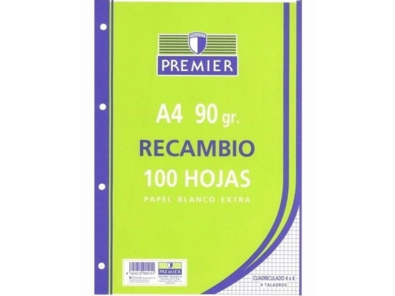 RECAMBIO PREMIER CUADROS A4 100H 90GR