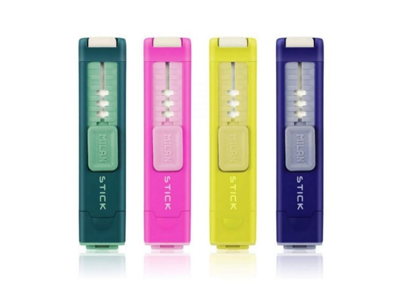 Combinación de goma y sacapuntas estándar, diseño STICK. Goma rectangular de gran longitud.