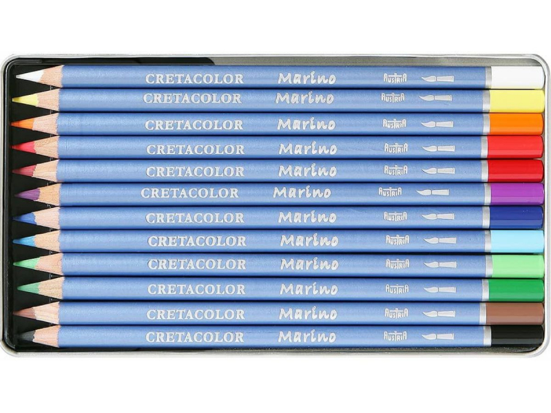 Caja de metal con 12 lápices de colores acuarelables, calidad para artistas , colores luminosos.