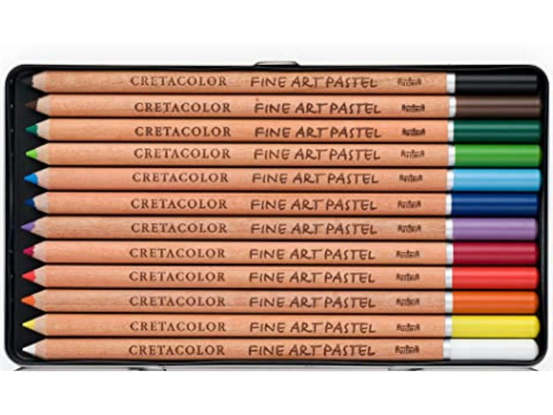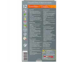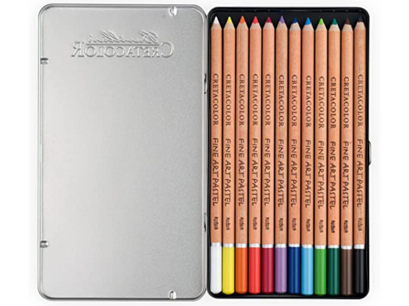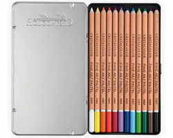 Caja de metal con 12 lápices mina pastel, no grasos y sin cocer.