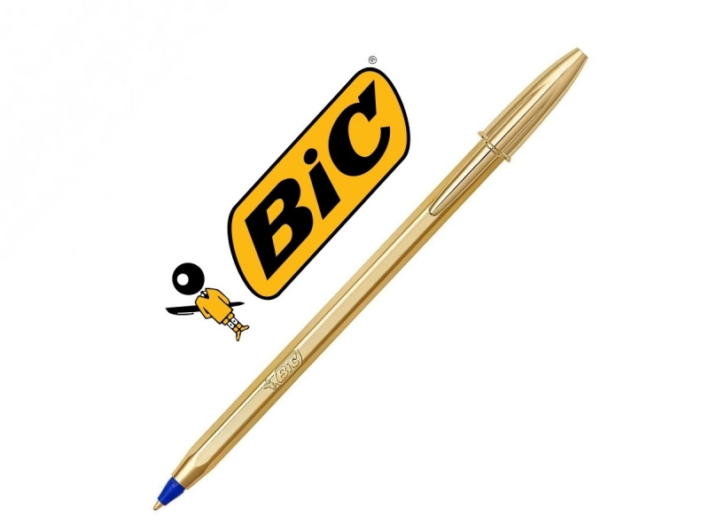 Boli Bic en tinta azul con la carcasa en color oro. Punta de 1mm y trazo de 0,4mm