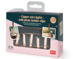 Compuesto por 20 luces fijas de LED en color blanco cálido y con 20 clips extraíbles en tono cobre.