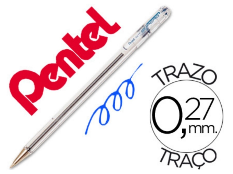 Bolígrafo Pentel de tinta azul, de punta metálica de 0,7mm con bola protectora contra el derrame de tinta.