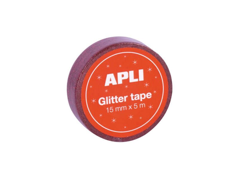 Cinta adhesiva glitter, opaca y en color rojo, perfecta para decorar tus manualidades con un toque de brillo.