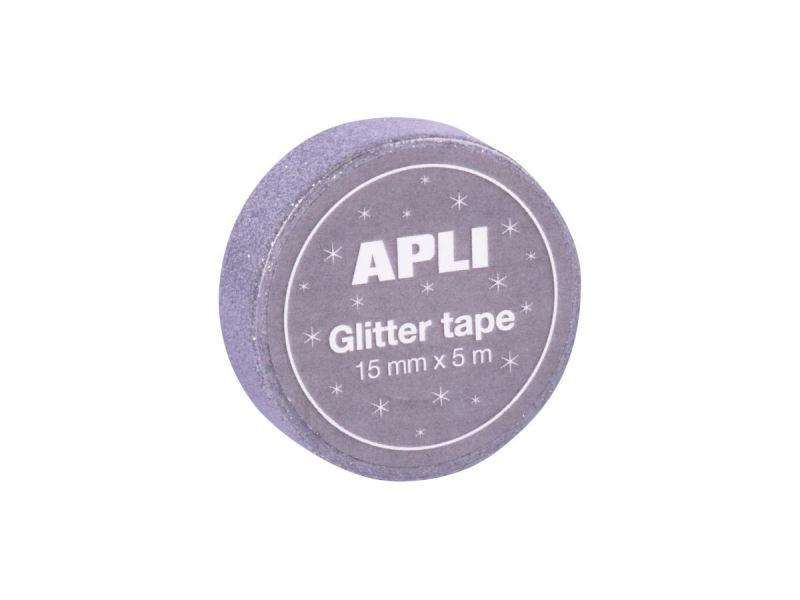 Cinta adhesiva glitter, opaca y en color plata, perfecta para decorar tus manualidades con un toque de brillo.