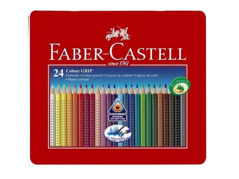 Caja de metal con una amplia gama de colores, 24 lápices con forma triangular y ergonómica que garantiza un agarre seguro, tanto para diestros como para zurdos.