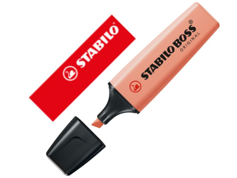 Marcador stabilo color melocotón, de punta biselada con dos anchos de línea, de 2 y 5 mm, lo que te permite marcar varios tamaños de texto o trazar líneas de diferentes grosores.