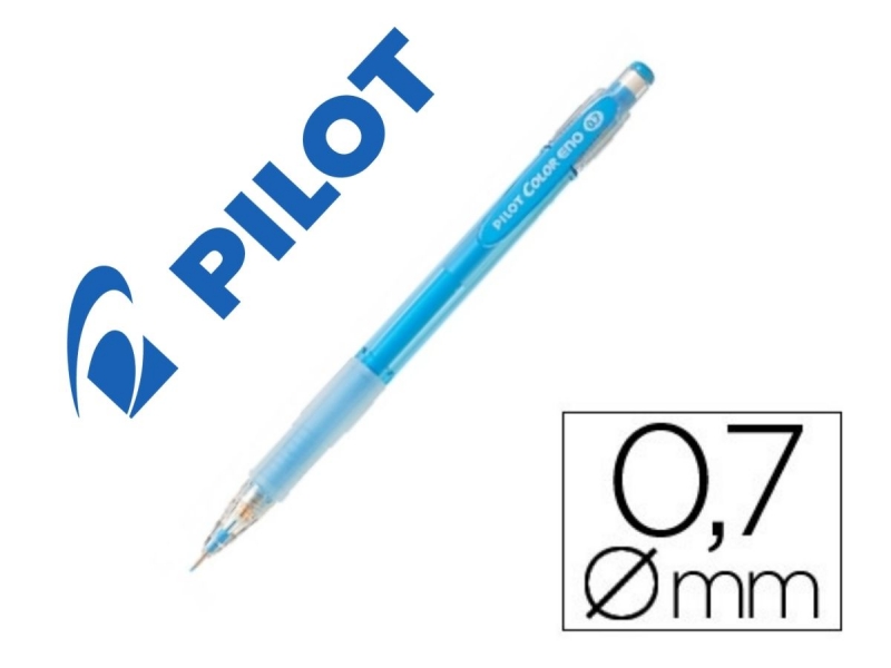 Portaminas de plástico con mina de color azul turquesa y grip en la parte inferior para un agarre más cómodo.