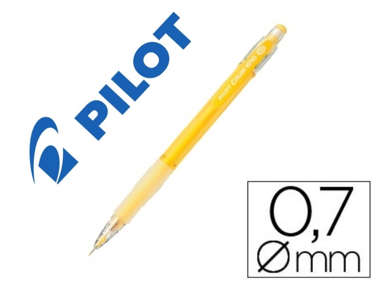 Portaminas de plástico con mina de color amarillo y grip en la parte inferior para un agarre más cómodo.